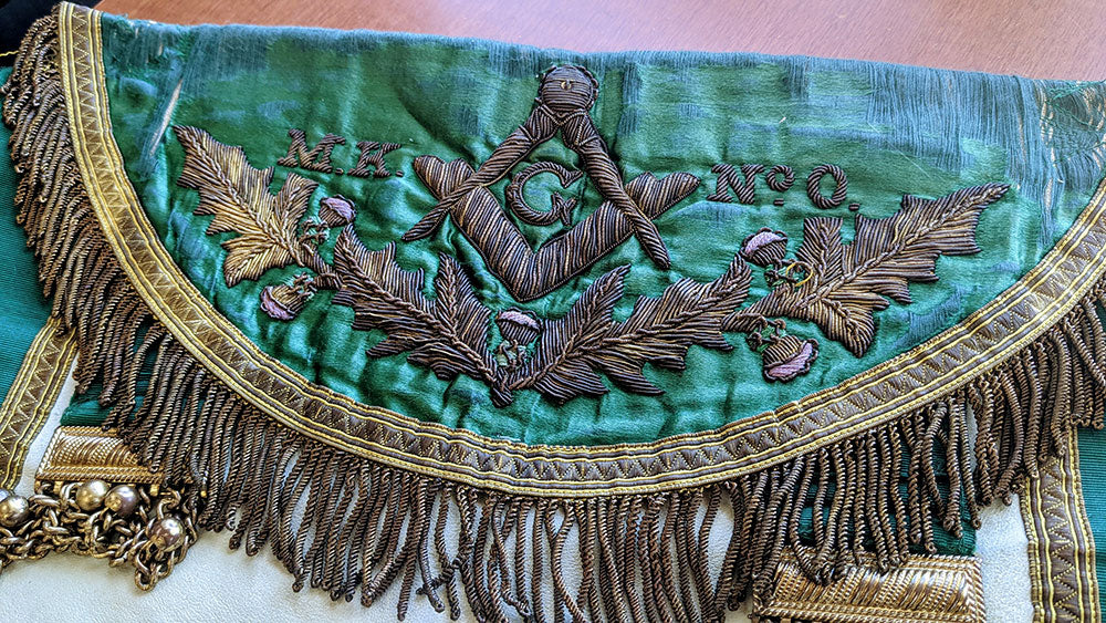 Yesterday, Rechelle and I had the pleasure of meeting Armed Forces Veteran and 5th generation Freemason W.B. Iain J.Y. Mann. Brother Iain (Gaelic for John), is a member of Fairbank Lodge No. 592 in Toronto and an affiliate member of Mother Kilwinning Lodge 0, his ancestral Lodge. He showed us his great grandfather's MK0 apron and gave us permission to share photos of this historic gem with you. Enjoy!🌿🙏