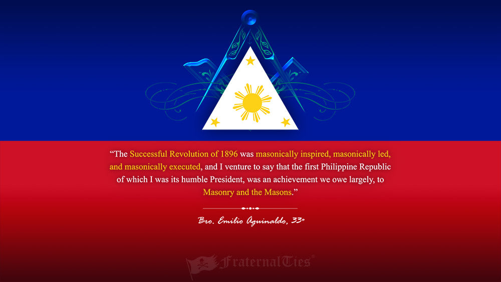 "The successful Revolution of 1896 was masonically inspired, masonically led, and masonically executed. And I venture to say that the first Philippine Republic of which I was its humble president, was an achievement we owe, largely, to Masonry and the Freemasons." - Gen. Emilio Aguinaldo, 1st President of the Philippine Republic.