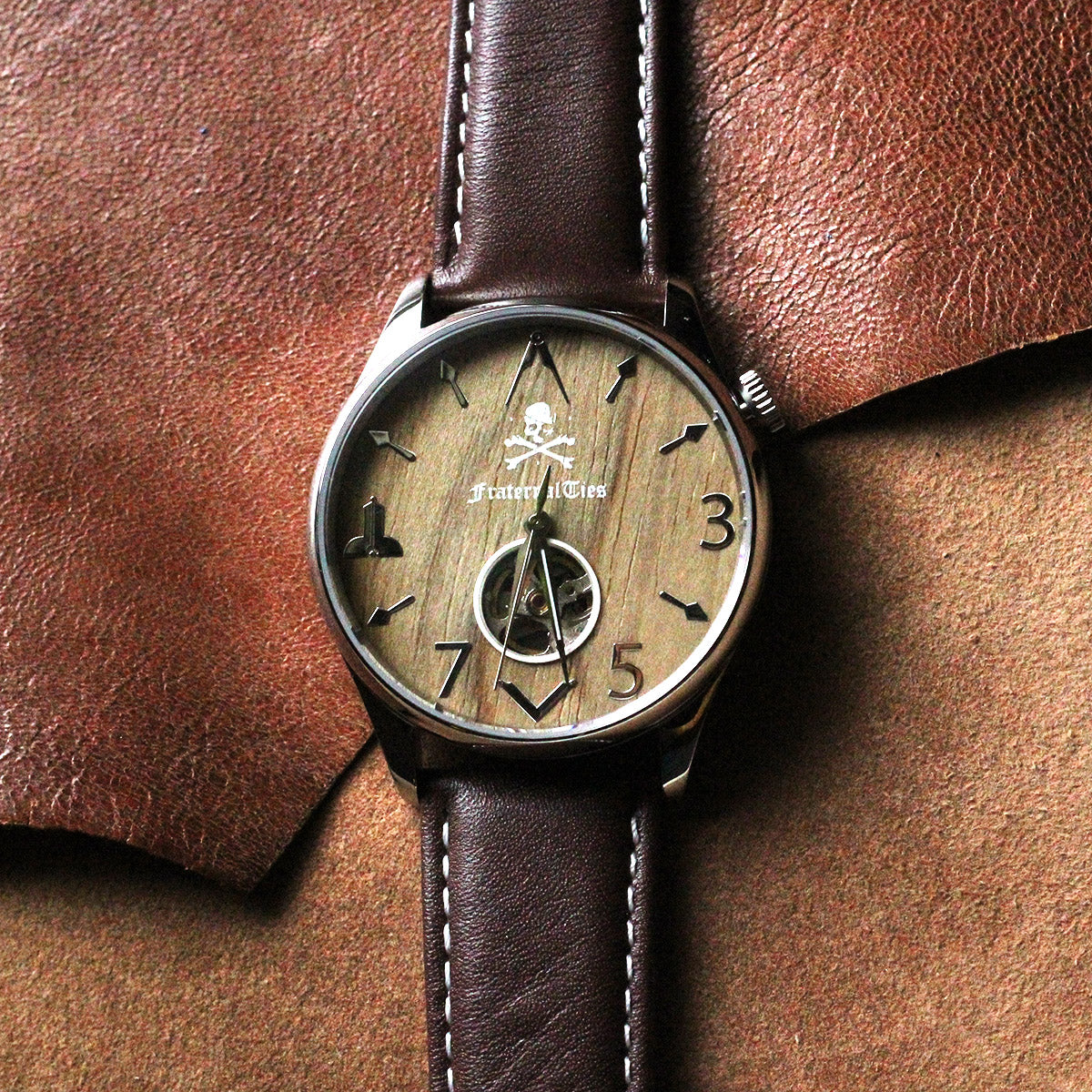 ◼ Gethsemane Automatic | sapphire, olive wood, marine grade case, leather straps, 21-jewel Japanese precision movement, exhibition caseback, 2 year limited warranty